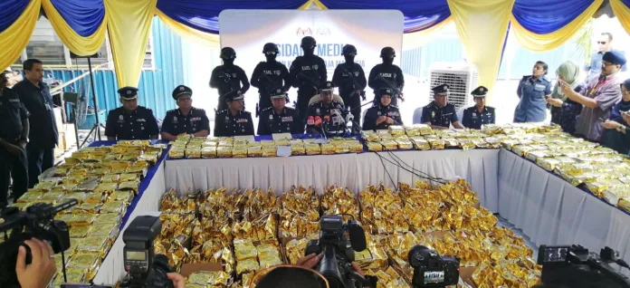 Hải quan Malaysia trưng bày 1.187kg Methamphetamine trị giá 17,8 triệu USD bị thu giữ trong một cuộc họp báo ở thị trấn Nilai, Malaysia ngày 28-5-2018. Ảnh: REUTERS