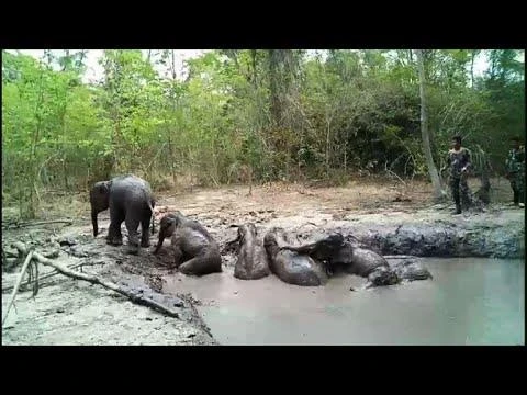 Các kiểm lâm viên tuần tra tình cờ bắt gặp một đàn voi con mắc kẹt trong hố bùn tại một công viên quốc gia nằm phía bắc thủ đô Bangkok.