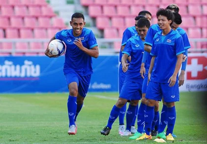 Dangda (ôm bóng) là tiền đạo chủ lực của Thái Lan đêm nay