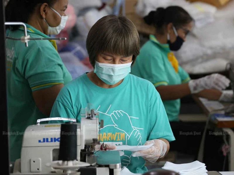 Một nhà máy sản xuất khẩu trang vải ở thủ đô Bangkok, Thái Lan. Ảnh: BANGKOK POST