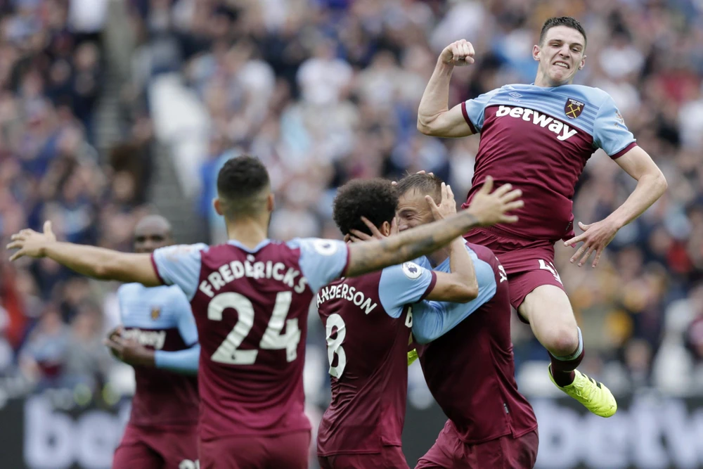 Cầu thủ West Ham mừng chiến thắng trước MU. Ảnh: REUTERS