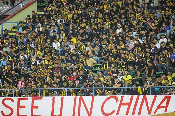 CĐV Malaysia ngồi lặng thất vọng với bàn thua do lỗi lầm của thủ môn nhà. Ảnh: HUY PHẠM