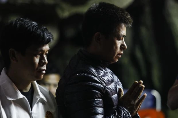 Các bậc phụ huynh của 12 em nhỏ đang đứng trước cửa hang động từ đêm 25 đến giờ để tìm tin tức trong sự hoảng loạn, khóc lóc, la hét.