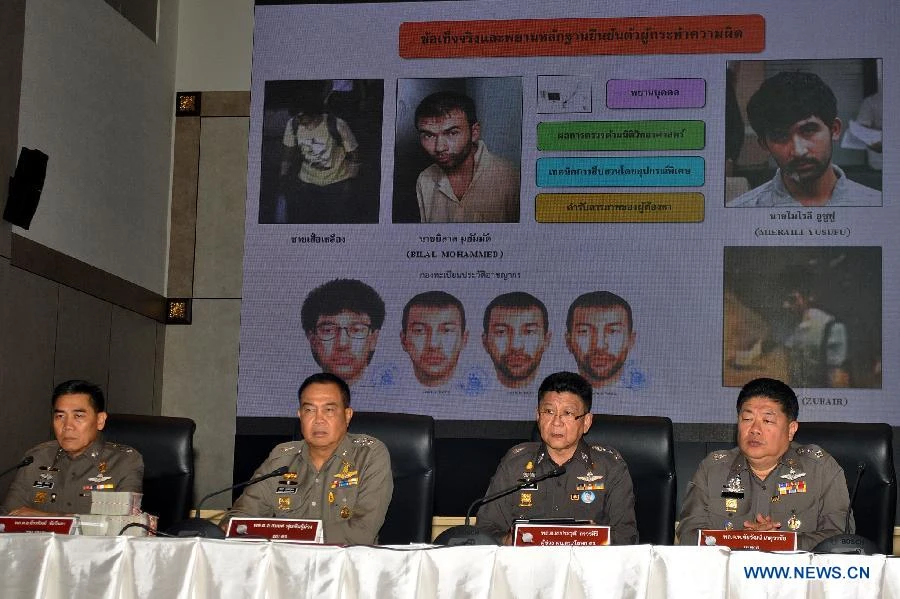 Nhà chức trách Thái Lan tiết lộ động cơ hai vụ đánh bom ở Bangkok hồi tháng 8 tại cuộc họp báo ngày 28-9. (Ảnh: Tân Hoa xã)