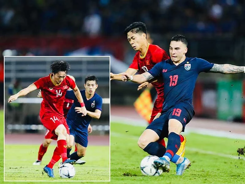 Cặp tiền vệ này trong hiệp 1 hiếm khi qua phần sân Thái Lan và tập trung đánh chặn nhiều, trong khi Quang Hải gần như mất hút vì thiếu sự hỗ trợ kịp thời trong lối chơi nặng về đánh chặn và ngăn đối thủ.