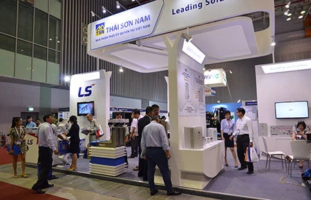 Với lần đầu tiên tham gia triển lãm, Công ty TNHH Thái Sơn Nam - nhà phân phối ủy quyền sản phẩm thiết bị điện LS đã gây ấn tượng mạnh với khách tham quan khi tự hào là doanh nghiệp trong nước có gian hàng quy mô và đa dạng (ảnh).