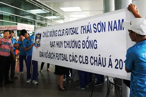 Các thành viên và người hâm mộ đội Thái Sơn Nam đã có mặt ở sân bay từ rất sớm - Ảnh: Hoàng Giang