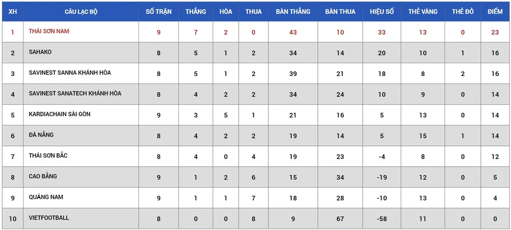 Ở lượt trận thứ chín chiều ngày 4-7, Thái Sơn Nam đã thắng Quảng Nam 2-1. Đây là một trận đấu căng thẳng, trọng tài phải rút ra đến 6 thẻ vàng chia đều cho hai đội.