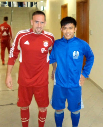 Thái Sung từng có cơ hội được chụp ảnh chung với tuyển thủ Pháp Ribery. Ảnh tư liệu