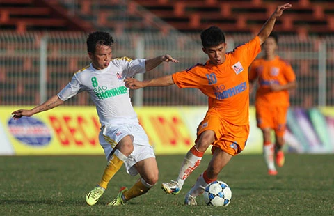 Thái Sung (10) trong màu áo U-21 Đà Nẵng nhưng không thể hiện được nhiều. Ảnh: ANH HẢI