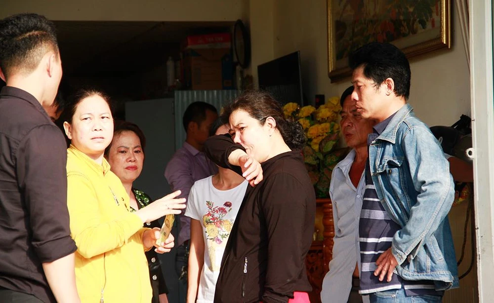 Bà Phụng (áo đen đứng giữa) trốn vào tủ nên thoát nạn. Ảnh NT.