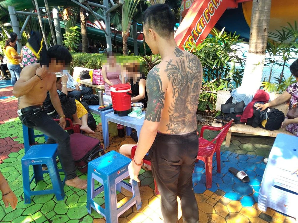 Tín (người xăm mình) trong một lần đi chơi dịp lễ vừa rồi cùng bạn. Ảnh HT.