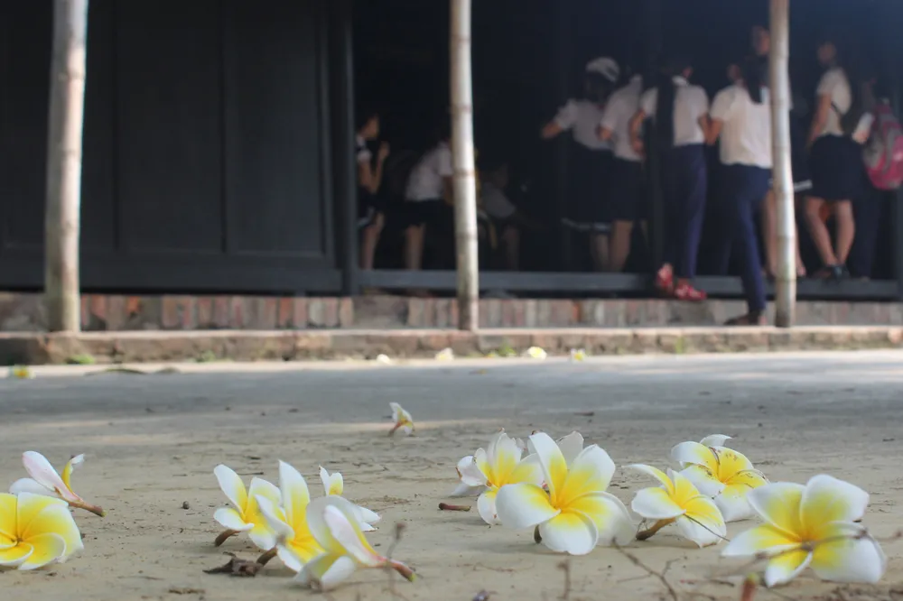 Ngôi nhà có nhiều cây hoa sứ tỏa bóng mát.