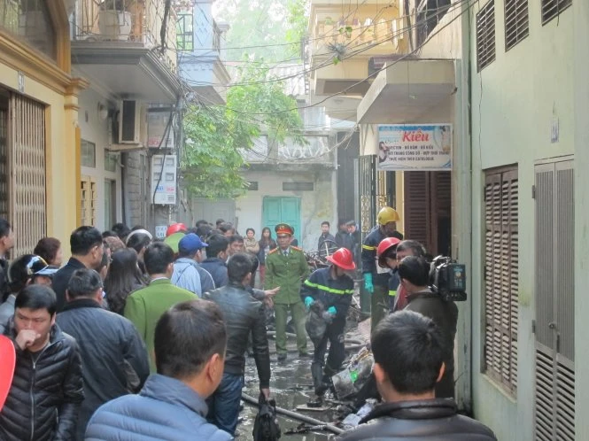 Theo thuật lại từ một số chiến sĩ chữa cháy, trong ngôi nhà vẫn còn những tiếng nổ lụp bụp. Khói âm ỉ bốc lên qua mái nhà.
