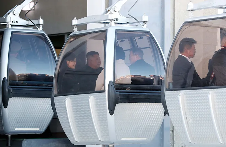 Trước đó, hai nhà lãnh đạo đã dùng chuyên cơ riêng cất cánh từ thủ đô Bình Nhưỡng đến sân bay Samjiyon, gần chân núi. Sau đó ông Moon và ông Kim ngồi cùng nhau trong một cabin cáp treo để lên đỉnh Paekdu.