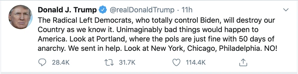 Ông Trump đã mỉa mai ông Biden là “chịu kiểm soát của phe cánh tả cực đoan” và đã đăng lên Twitter rằng ứng cử viên này không đủ sức khoẻ tinh thần để giữ chức tổng thống.