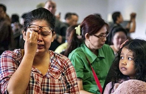Người nhà nạn nhân QZ8501 rất lo sẽ không tìm thấy thi thể người thân trên chuyến bay gặp nạn. Ảnh: CNA.