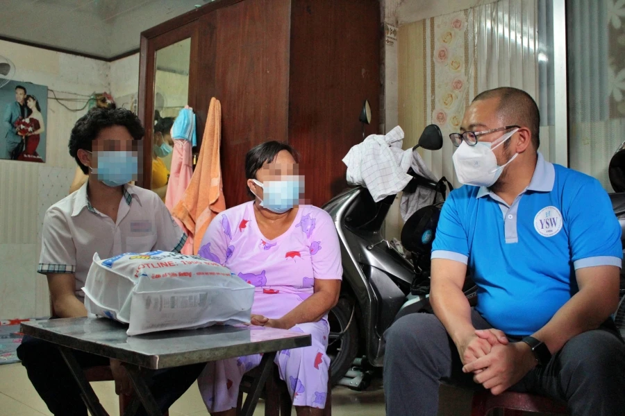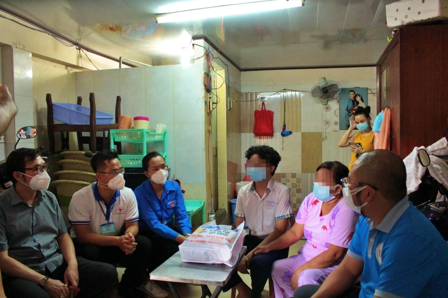 Điểm đến đầu tiên của đoàn công tác là gia đình em NQT học lớp 9, ngụ phường An Phú. Trong căn nhà nhỏ, nóng hầm hập, mẹ của T. kể cha của T. vừa qua đời do mắc COVID-19. Chị không có nghề nghiệp ổn định và đã thất nghiệp suốt mấy tháng qua.