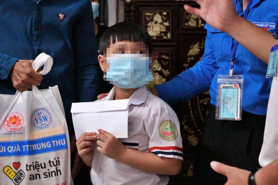 Một trường hợp khác mà đoàn công tác đến thăm cũng rất thương tâm. Đó là bé HTP (học lớp 2, ngụ phường Bình Trưng Đông). Mẹ của P. dương tính với COVID-19 khi đang mang thai. Do diễn tiến bệnh nặng, bác sĩ quyết định mổ lấy em bé. Sau đó, mẹ của P. cũng qua đời.