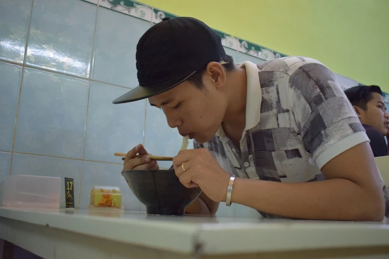 Bữa ăn tối của Lê Tấn Lợi là lúc gần 11 giờ đêm. Ảnh: NGUYỄN TRÀ