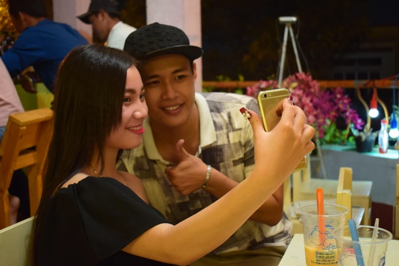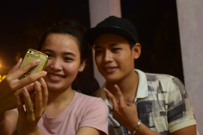 Chụp ảnh cùng các bạn trẻ. Ảnh: NGUYỄN TRÀ