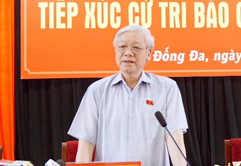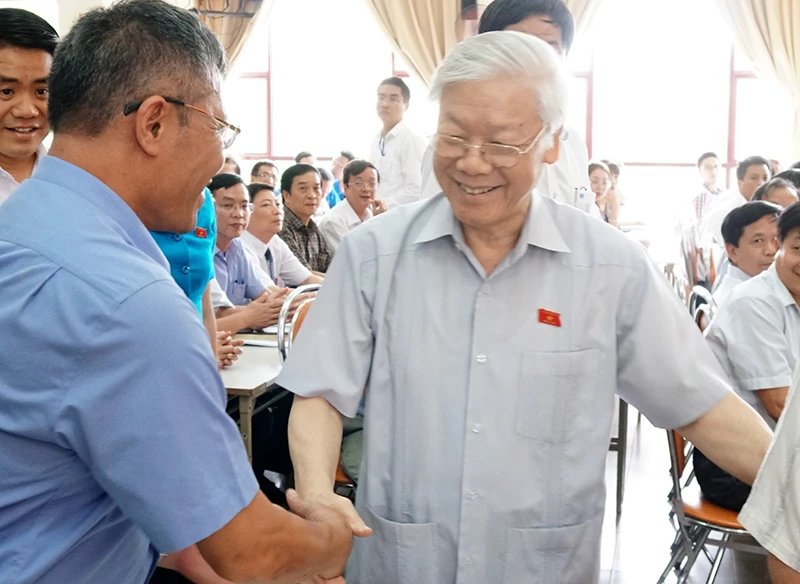 Tổng Bí thư Nguyễn Phú Trọng thăm hỏi cử tri.