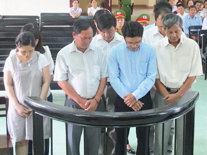 Các bị cáo là cán bộ Sở TN&MT Phú Yên nghe tòa tuyên án chiều nay (12-6). Ảnh: TẤN LỘC