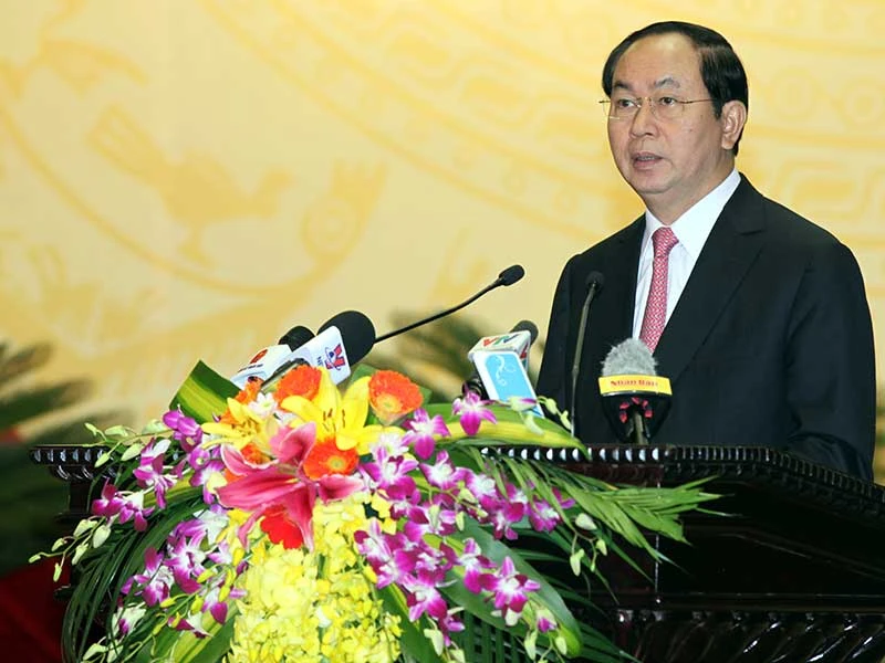 Chủ tịch nước Trần Đại Quang phát biểu chỉ đạo tại hội nghị. Ảnh: Đ.MINH