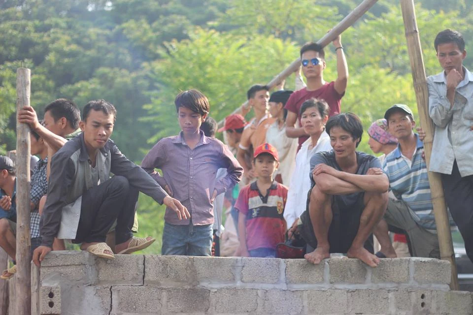 Đông đảo người dân có mặt tại hiện trường vụ án để theo dõi lực lượng công an điều tra