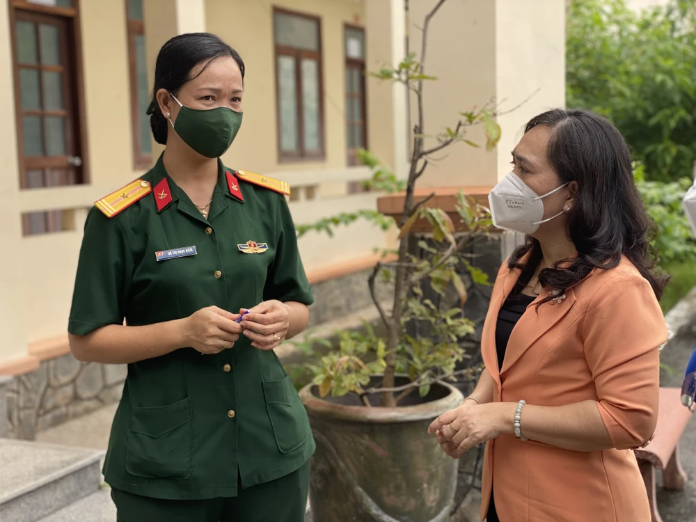 Có mặt tại khu cách ly đặt tại Trường quân sự Quân khu 7 (quận 12), Chủ tịch Hội Nông dân TP cùng với các thành viên trong đoàn đã đến thăm các cán bộ quân nhân, lực lượng y tế tại đây.