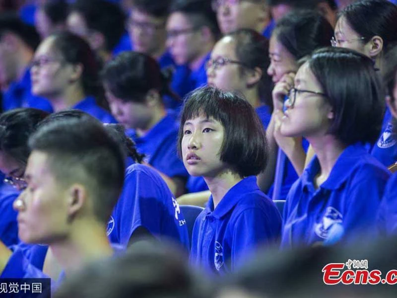 Trần Thư Âm trong buổi lễ đón tân sinh viên của Trường ĐH Chiết Giang, TQ. Ảnh: CHINA DAILY