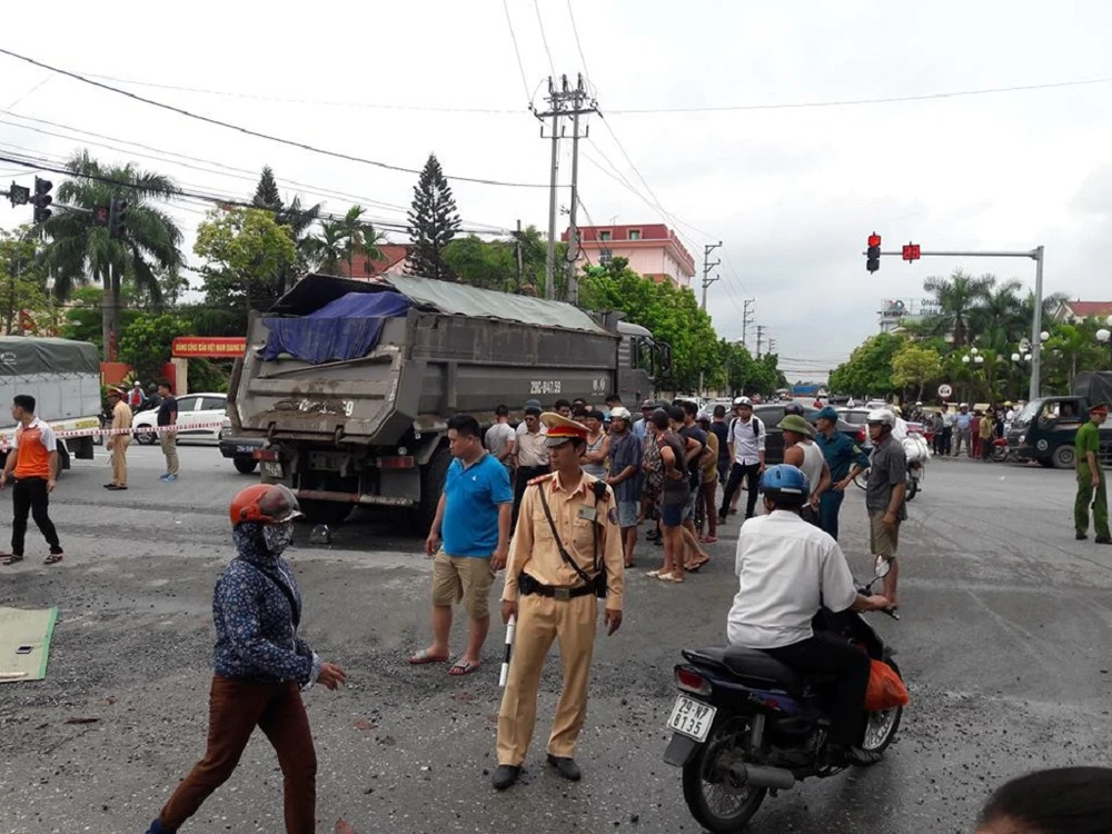 Người dân gần hiện trường cho biết thời điểm trên, một người phụ nữ điều khiển xe máy 29X3-380.63 từ phố Tây Sơn hướng ra Quốc lộ 32. Đến ngã tư, chiếc xe tải chở cát 29C-847.59 lưu thông cùng chiều đã bất ngờ va chạm với xe của người phụ nữ này.