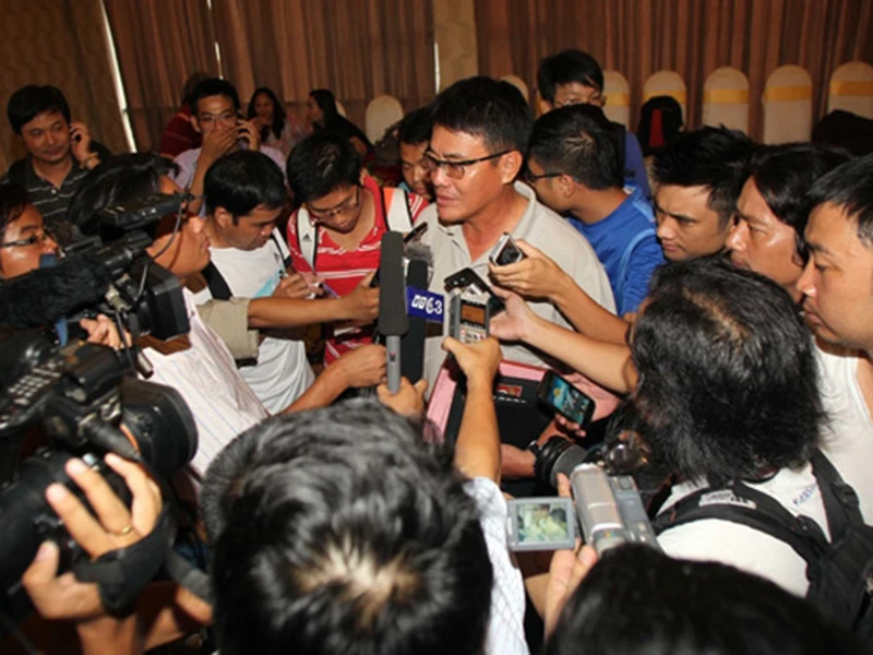 Ông trưởng đoàn “son” của bóng đá Việt Nam Dương Vũ Lâm chia sẻ với truyền thông Việt Nam và tin đội tuyển sẽ làm nên chuyện như 10 năm trước. Ảnh: CTV