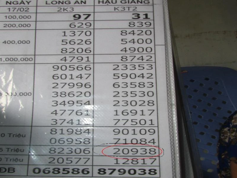 Theo bà Lâm Thị Túy Vân (67 tuổi, ngụ ấp Phú Thành B, xã Phú Tâm, huyện Châu Thành, Sóc Trăng), người bán vé số gần chợ Phú Tâm, cho biết: “Hôm qua đại lý vé số Nghĩa mang vé số về phân phối lại cho tôi và những người bán khác với đủ loại con số, trong đó có số 20938 đài Hậu Giang đến 90 tờ. Đến chiều cùng ngày, cả 90 tờ này đều trúng giải thưởng 15 triệu đồng/tờ, riêng tôi bán cho khách trúng được năm tờ, 85 tờ còn lại phân phối cho những người khác trong xã, mỗi người trúng từ hai đến ba tờ”.