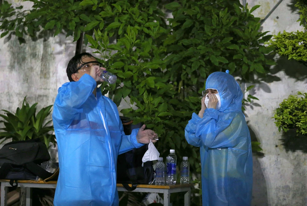 Hơn 1 giờ sáng khi đã lấy xong mẫu xét nghiệm cho những người dân trong đợt cuối, các y bác sĩ mới có phút thảnh thơi.