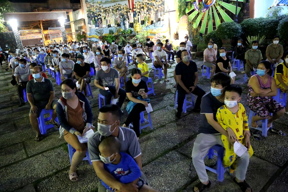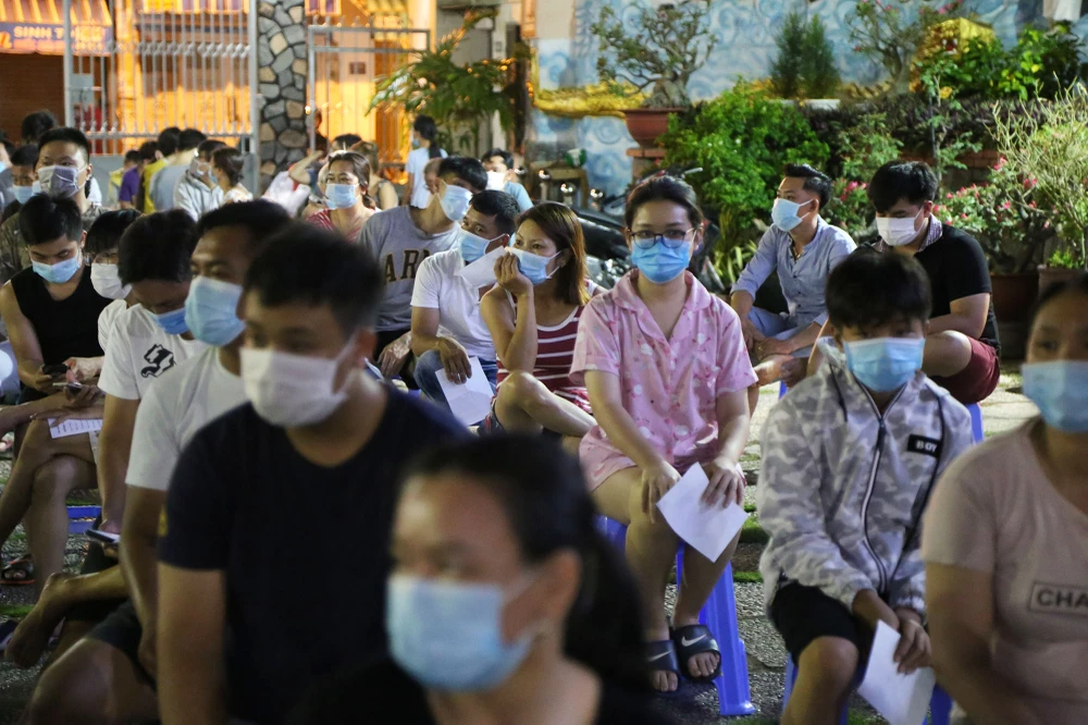Ghi nhận tại điểm lấy mẫu xét nghiệm trong khuôn viên Giáo xứ Đức Mẹ Hằng Cứu Giúp (phường 15, quận Gò Vấp) lúc 23 giờ vẫn có hàng trăm người chờ để được lấy mẫu.