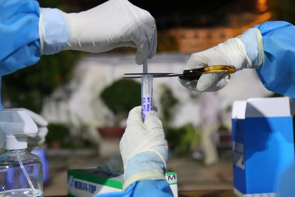 Tại đây, người dân được lấy mẫu theo hình thức mẫu gộp (5 người thành một mẫu).