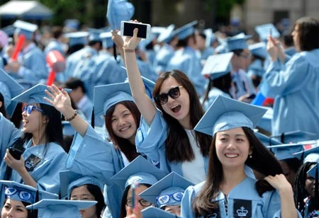 Sinh viên Trung Quốc trong buổi lễ tốt nghiệp tại Đại học Columbia, New York, Mỹ hôm 20-5 (Ảnh: Tân Hoa Xã)