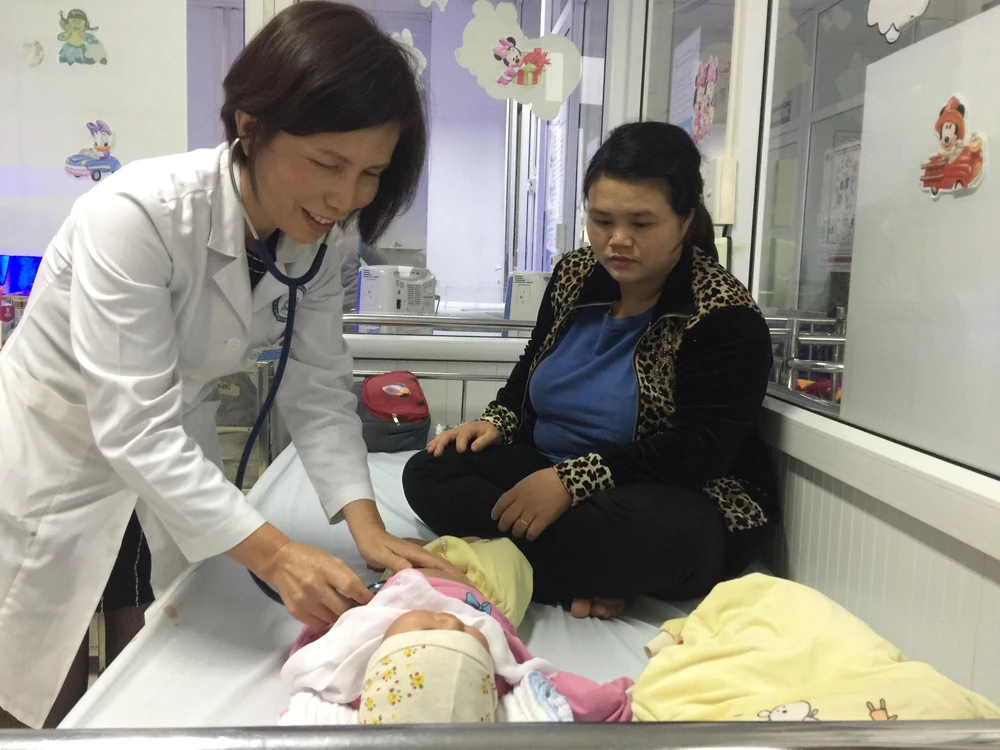 BS Hồng Lạc đang thăm khám cho một bệnh nhi. Ảnh: TP
