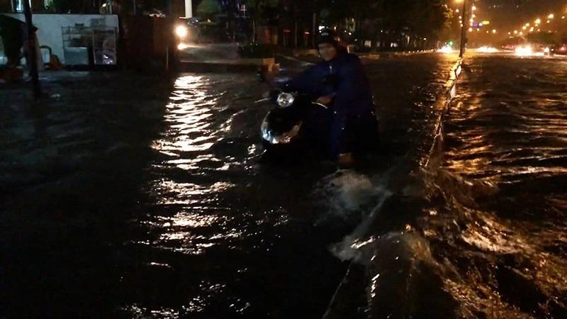 Đường Nguyễn Hữu Cảnh thường bị ngập nặng sau những trận mưa lớn. Ảnh: Nguyễn Tân