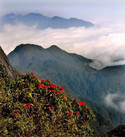 Nếu từ trên cáp treo nhìn xuống, du khách sẽ được chiêm ngưỡng thảm hoa đỗ quyên đủ sắc màu rực rỡ giữa đại ngàn.