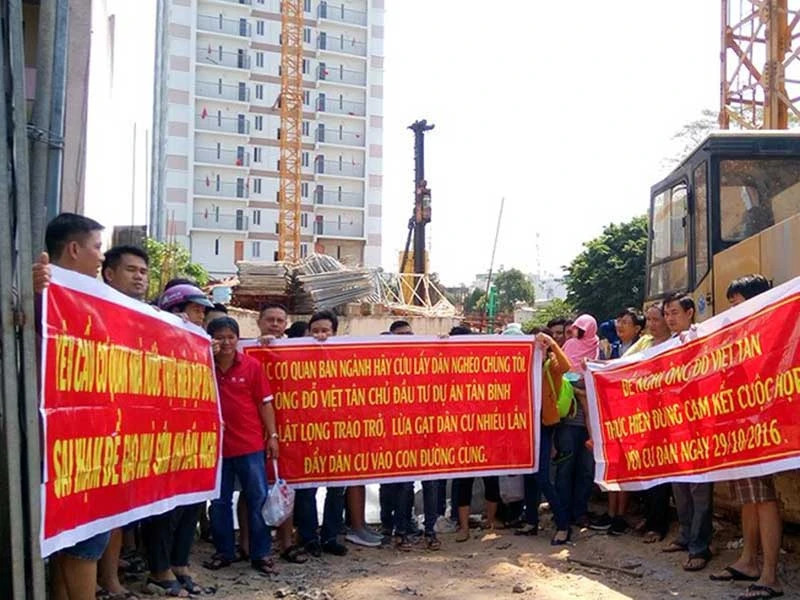 Cư dân bức xúc do chủ đầu tư chậm bàn giao nhà trong thời gian quá dài. Ảnh: Q.HUY