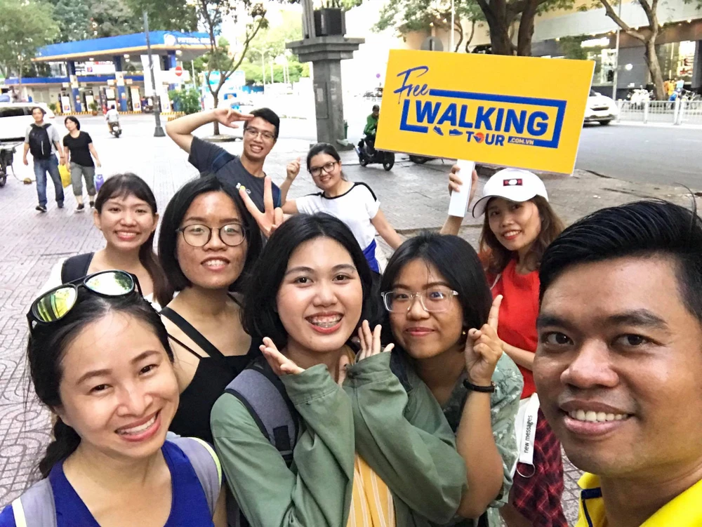 Du khách tham gia chương trình free walking tour khám phá những điểm nổi tiếng của TP.HCM cùng Công ty du lịch Vietravel trước khi xảy ra dịch. Ảnh: Tú Uyên