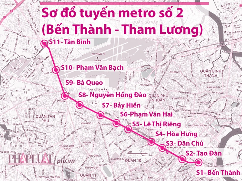 | Các kế hoạch sắp tới của dự án metro số 2 Để quyết liệt triển khai việc giải phóng mặt bằng, UBND TP.HCM giao UBND các quận, huyện thực hiện các kế hoạch sắp tới như sau: Trong tháng 4-2020, các quận công bố lấy ý kiến đối với dự thảo chính sách và phương án bồi thường, hỗ trợ, tái định cư của từng hộ dân. Đồng thời tiếp xúc đối thoại theo quy định tại Điều 69 Luật Đất đai. Từ tháng 4 đến tháng 5-2020, UBND các quận sẽ ban hành quyết định thu hồi đất, quyết định phê duyệt chính sách và phương án bồi thường, hỗ trợ, tái định cư của dự án. Đồng thời, các quận này cũng chi trả tiền bồi thường, hỗ trợ, tái định cư; bố trí tái định cư và giải quyết cấp phép xây dựng đối với phần diện tích còn lại. Bên cạnh đó, các quận sẽ vận động người dân tháo dỡ công trình và bàn giao mặt bằng. Tháng 6-2020, các quận sẽ áp dụng biện pháp cưỡng chế thu hồi đất đối với những trường hợp không đồng thuận và không chấp hành bàn giao mặt bằng. Được biết, dự án metro số 2 được phê duyệt năm 2010 và đã được điều chỉnh tổng mức đầu tư năm 2019 với 47.890,840 tỉ đồng (tương đương 2.093,59 triệu USD). Nguồn vốn ODA từ ADB, KfW, EIB và vốn đối ứng. Tuyến metro số 2 đi qua địa bàn các quận 1, 3, 10, 12, Tân Bình, Tân Phú và kết nối với các tuyến metro số 1, 5, 3b và 6. |
