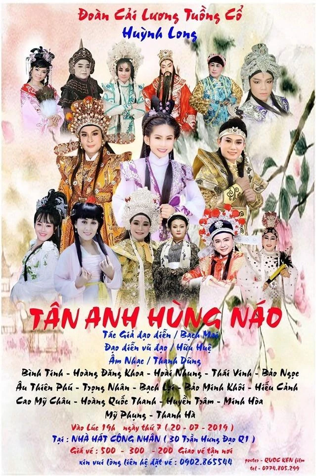 * Vào tối 20-7, tại rạp Công Nhân sẽ diễn ra đêm diễn vở cải lương hồ quảng Tân Anh hùng náo của Đoàn cải lương Huỳnh Long. Vở diễn do tác giả Bạch Mai viết kịch bản, nghệ sĩ Hữu Huệ đạo diễn vũ đạo, các nghệ sĩ tham gia gồm: Bình Tinh, Hiếu Cảnh, Hoàng Quốc Thanh, Cao Mỹ Châu, Hoàng Đăng Khoa, Thái Vinh, Bảo Ngọc… Vở kể câu chuyện truyền kỳ của Trung Quốc về nàng Sở Vân giả trai, tụ họp cùng các anh hùng hào kiệt giỏi võ nghệ giúp vua giúp nước.