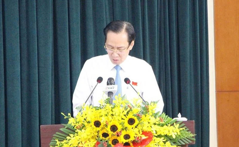 Phó Chủ tịch Thường trực UBND TP.HCM Lê Thanh Liêm báo cáo tại kỳ họp. Ảnh: TL