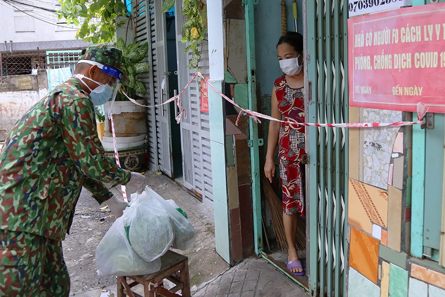 Chiến sĩ Sư đoàn 5 đưa thực phẩm đến tận nhà cho F0 đang điều trị tại nhà