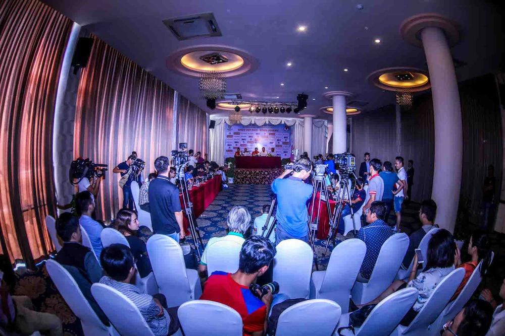 Quang cảnh buổi họp báo trước trận Việt Nam - Jordan.