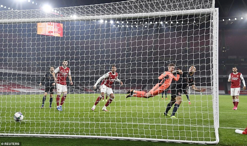 ARSENAL: Runarsson 4.5; Mustafi 5.5, Gabriel 6, Kolasinac 6; Soares 5.5, Elneny 6 (Rowe 66, 6), Ceballos 6, Maitland-Niles 6; Willock 6, Lacazette 6.5, Martinelli 7 (Pepe 48).