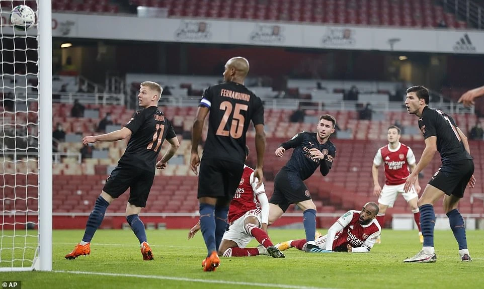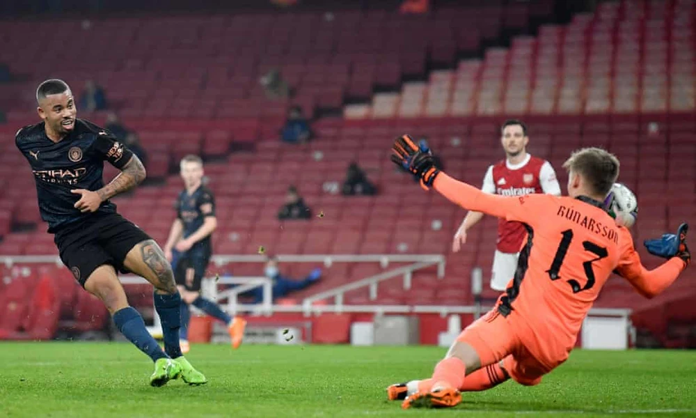 Arsenal đối đầu với Man. City tạo nên một trong những trận tứ kết đáng xem nhất tại EFL Cup. Với đội hình được đánh giá nhỉnh hơn, đội bóng của HLV Pep Guardiola không tốn quá nhiều thời gian để có được bàn thắng ngay trên sân Emirates của đối thủ. Từ tình huống tạt bóng của Zinchenko bên cánh trái, tiền đạo Grabiel Jesus đánh đầu cận thành giúp Man. City mở tỷ số 1-0 ở phút thứ 3.